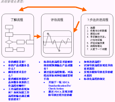 "TQM"核心思想究竟是什么呢?簡言之,"TQM"分為三步:了解流程,檢討流程,改進(jìn)流程。下圖可以很好說明這種思想: