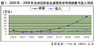 國(guó)內(nèi)的研究機(jī)構(gòu)也不甘落后,對(duì)2002年內(nèi)地視頻會(huì)議市場(chǎng)銷售額的預(yù)測(cè)高達(dá)20億至40億元人民幣不等。而眾多廠商也一致認(rèn)為,未來(lái)的一段時(shí)間將成為視頻通信,尤其是視頻會(huì)議市場(chǎng)發(fā)展的黃金時(shí)期。
