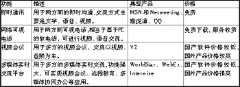 從結(jié)構(gòu)上,軟件視頻產(chǎn)品基本分為兩大類:一類是點(diǎn)對點(diǎn),另一類是一點(diǎn)對多點(diǎn)。點(diǎn)對點(diǎn)產(chǎn)品僅限于兩人之間的交流,此類典型產(chǎn)品有微軟的MSN和NetMeeting、Yahoo的雅虎通、QQ等;一點(diǎn)對多點(diǎn)產(chǎn)品用于多方的實(shí)時交流,此類產(chǎn)品是各種軟件解決方案的軟件視頻會議產(chǎn)品,如:北京捷先科技的WorldStar、威速公司的V2等。根據(jù)用途的不同,軟件視頻產(chǎn)品大致分為即時通訊產(chǎn)品(如MSN和NetMeeting、雅虎通、QQ)、網(wǎng)絡(luò)可視電話產(chǎn)品、視頻會議產(chǎn)品(如:V2)、多媒體實(shí)時交流平臺產(chǎn)品(如:WorldStar、WebEx、Interwise等),分類如表。