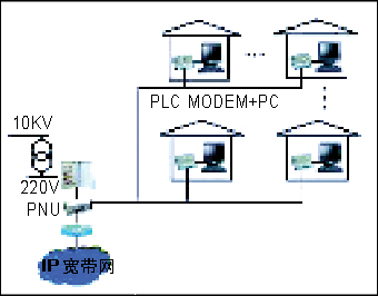 利用普通220V電源線作載體,將IP寬帶信號接入每個家庭的PLC(Power Line Communication)網(wǎng)絡(luò)正在進入小區(qū)/樓宇市場。它是通過電力線網(wǎng)絡(luò)單元(PNU)將寬帶接入信號經(jīng)正交頻分復(fù)用(OFDM)調(diào)制、匯入小區(qū)/樓宇電力變壓器用戶輸出線上,再經(jīng)電源線送到各家各戶。PC、IP Phone、Fax設(shè)備均可通過房間內(nèi)部的電源插座寬帶接入Internet。