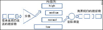 為了實現QoS,需要改變傳統IP網絡的FIFO隊列傳輸報文機制,轉而采用優(yōu)先級隊列(Priority Queueing, PQ)機制,見圖2。