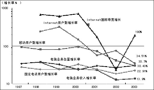 中國電信集團(tuán)總工程師韋樂平認(rèn)為,在世界范圍內(nèi)移動對固網(wǎng)的替代趨勢正在日益加速,這使得固網(wǎng)話務(wù)量、收入和主線等三個方面全面進(jìn)入衰退時期。根據(jù)IGO的統(tǒng)計,全球有28個國家固網(wǎng)的復(fù)合增長率呈現(xiàn)下降趨勢,如美國、日本、北歐等。美國從2000年以后,電話的主線一直呈現(xiàn)持續(xù)下降的趨勢,每年減少250萬線,南方貝爾2003年第四季度一個季度就下降了40萬,形勢非常嚴(yán)峻。2003年歐洲前十位固網(wǎng)運(yùn)營商的收入增長,除了BT有百分之一的增長之外,全部都是負(fù)增長。而按照中國電信的統(tǒng)計,2004年第一季度中國電信的增長率也是負(fù)的,這在歷史上是第一次出現(xiàn)。