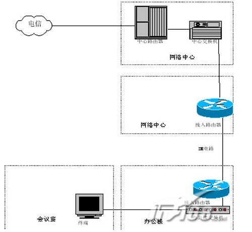 。。光纖接入也是一種方便的接入方案。在電信機(jī)房與用戶之間直接鋪設(shè)光纖或者租借第三方的光纖,在兩端增加一對光電轉(zhuǎn)換器,電信機(jī)房的光纖轉(zhuǎn)換器連接到中心交換機(jī)上,直接接入電信骨干網(wǎng),用戶端的光電轉(zhuǎn)換器連接到本地的局域網(wǎng)的交換機(jī)上,這樣可以實現(xiàn)本地的視頻會議終端的接入。