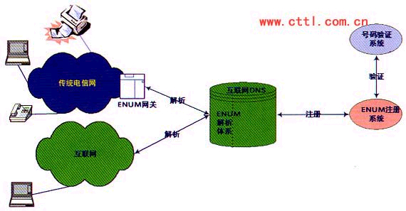 圖1 引入ENUM機制的網(wǎng)絡體系架構