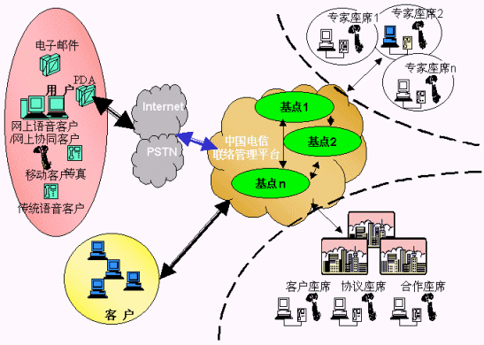 電信運(yùn)營(yíng)商提供的用戶、客戶、電信公司的統(tǒng)一的聯(lián)系平臺(tái),各類客戶通過(guò)使用聯(lián)系平臺(tái),向其用戶提供方便的、不受時(shí)間、地域和媒體的限制的"3A"級(jí)聯(lián)絡(luò)服務(wù),用戶、客戶、電信平臺(tái)間的聯(lián)絡(luò)能得到有效路由、管理、品質(zhì)保障;聯(lián)絡(luò)中心通過(guò)將分布在各地、各種媒體、各種形式的資源整合在一起實(shí)現(xiàn)客戶服務(wù)增值,創(chuàng)造無(wú)限商機(jī),有效提升客戶聯(lián)絡(luò)中心的價(jià)值,使用戶得到最貼身的、個(gè)性化的、專業(yè)的服務(wù),為客戶提供成本更低、資源更豐富、服務(wù)更專業(yè)、具備強(qiáng)大商業(yè)智能的產(chǎn)品營(yíng)銷及服務(wù)、電信運(yùn)營(yíng)商則開(kāi)發(fā)大量的增值服務(wù)、產(chǎn)生更多的利潤(rùn)增長(zhǎng)空間、更多忠實(shí)的客戶,實(shí)現(xiàn)三方面共同成功。
