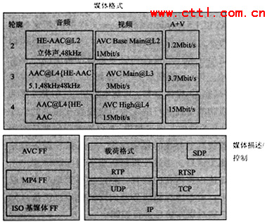如第二部分所介紹那樣,ISMA致力于多種開放標準的集成,在2004年發(fā)布的ISMA2.0中給出了ISMA對流媒體業(yè)務的框架結構圖(見圖3)。從圖中可以看出、,ISMA最先希望解決的是與媒體編碼格式、媒體存儲、媒體傳輸(包括載荷輪廓)相關內(nèi)容。在ISMA目前的體系架構中主要希望支持采用MPEG4標準進行編碼的媒體以及相應的標準存儲格式以及IETF所規(guī)定的標準傳輸協(xié)議,這與ISMA制定標準的準則相一致。