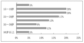 KDDI有關(guān)人士表示:“這個(gè)業(yè)務(wù)當(dāng)初是瞄準(zhǔn)30多歲用戶開(kāi)發(fā)的,但實(shí)際上在購(gòu)買此類手機(jī)的人士中,10多歲或20多歲的年輕用戶占了62%,見(jiàn)圖1。據(jù)本公司以高中生和大學(xué)生為對(duì)象實(shí)施的調(diào)查結(jié)果顯示,如果音質(zhì)與CD差不多就愿意使用手機(jī)音樂(lè)發(fā)行服務(wù)。”chakuutaFull業(yè)務(wù)的特點(diǎn):