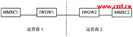 圖2 點(diǎn)對點(diǎn)多媒體消息業(yè)務(wù)網(wǎng)間互聯(lián)網(wǎng)絡(luò)結(jié)構(gòu)示意圖