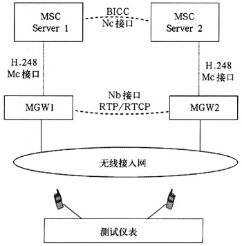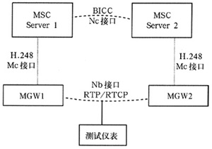 主要是通過(guò)測(cè)試儀表模擬兩個(gè)NGN網(wǎng)絡(luò)的終端用戶,首先通過(guò)同NGN網(wǎng)絡(luò)的信令交互建立起這兩個(gè)用戶之間的呼叫連接,然后在該連接上模擬發(fā)送和接收測(cè)試語(yǔ)音流,通過(guò)對(duì)收發(fā)語(yǔ)音信號(hào)的比較,來(lái)測(cè)試出端到端的語(yǔ)音質(zhì)量,并且能提供PESQ值和時(shí)延值,圖3為主動(dòng)式語(yǔ)音質(zhì)量測(cè)試的結(jié)構(gòu)圖。