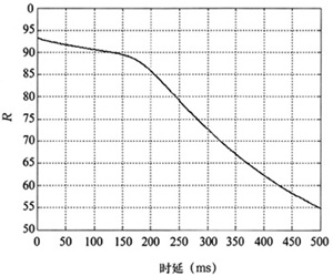 對(duì)實(shí)時(shí)的語(yǔ)音和視頻業(yè)務(wù)來(lái)說(shuō),業(yè)務(wù)數(shù)據(jù)端到端的時(shí)延最為關(guān)鍵,從仿真結(jié)果圖6和圖7可以看出時(shí)延對(duì)R系數(shù)和MOS值的影響:隨著時(shí)延的增加,R系數(shù)和MOS值都降低,即語(yǔ)音質(zhì)量變差。當(dāng)時(shí)延大于150ms時(shí),語(yǔ)音質(zhì)量下降的比較厲害。