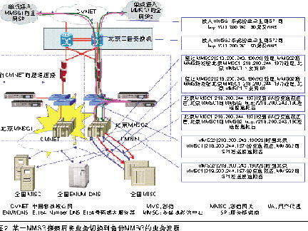 為驗(yàn)證基于IP尋址的彩信網(wǎng)關(guān)備份方案的現(xiàn)網(wǎng)可行性,2006年12月6日在北京MMSG進(jìn)行了容災(zāi)備份的測試。當(dāng)時,北京MMSG1已經(jīng)割接入網(wǎng),承載空中網(wǎng)公司、Sina公司的業(yè)務(wù),北京MMSG2正在進(jìn)行測試,TOM公司進(jìn)行配合。