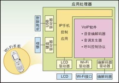 在這些設(shè)計中,一般的人機(jī)界面(MMI)以及VoIP通話控制功能使用傳統(tǒng)的應(yīng)用處理器(ARM、MIPS等),而DSP則用于語音到數(shù)據(jù)包到語音的轉(zhuǎn)換。此方法在便攜設(shè)備的設(shè)計中暴露出很多缺點。