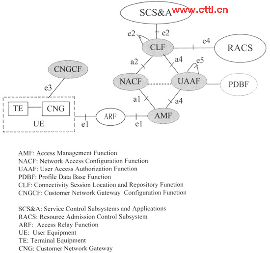 TISPAN有多個(gè)工作小組從事NASS的研究,分別研究NASS的內(nèi)部架構(gòu)和外部接口協(xié)議(如e1,e2,e4,e5),NGN Release