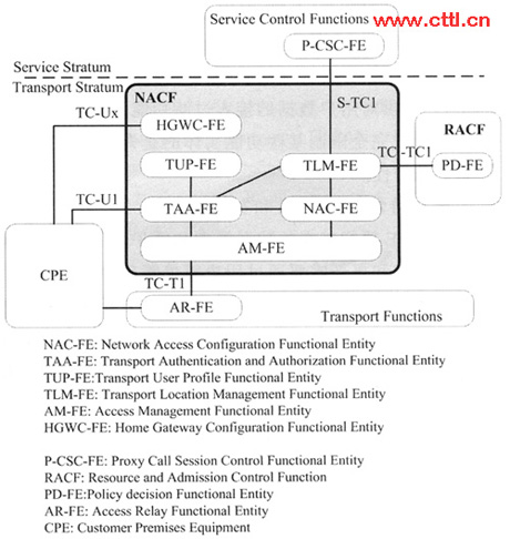 ITU-T沒有設(shè)立單獨(dú)的項(xiàng)目研究NACF,只在NGN的功能需求和架構(gòu)建議草案中對(duì)NACF有所提及,所以對(duì)網(wǎng)絡(luò)附著子系統(tǒng)的研究相對(duì)滯后,研究?jī)?nèi)容主要包括:NACF的功能架構(gòu)、該功能架構(gòu)中包含的邏輯功能實(shí)體等。