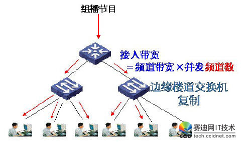 根據(jù)樓道交換機(jī)支持的能力,組播復(fù)制方式可以采用邊緣復(fù)制或集中復(fù)制。