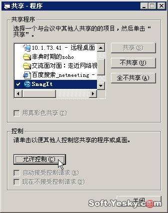 然后在客戶端Netmeeting中只須在其窗口出現(xiàn)的共享程序窗口中單擊“控制”/“請(qǐng)求控制權(quán)”并經(jīng)授權(quán)后即可以操控主機(jī)上的應(yīng)用程序了。