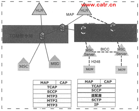 Server,彩鈴等)以IP鏈路接入IP STP(參見圖3)。