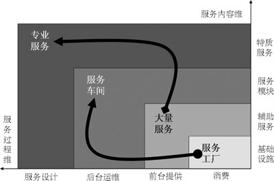 表1中以“★”標(biāo)識(shí)的服務(wù)基本上都是電信運(yùn)營(yíng)企業(yè)開展移動(dòng)信息化后向客戶提供的服務(wù),可以明顯看出,更高的顧客參與度、更多的顧客化是這些服務(wù)的共同特點(diǎn),所以,移動(dòng)信息化運(yùn)營(yíng)的就是由服務(wù)工廠向服務(wù)車間轉(zhuǎn)型、由大量服務(wù)向?qū)I(yè)服務(wù)轉(zhuǎn)型。