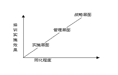 為了確保培訓實施效果能達到預期的效果及水平即達到預期的認識水平,來自于管理層的執(zhí)行力必不可少,任何一項培訓工作如果不能自下而下的進行“洗腦”即同化過程,很難保證培訓效果。簡言之,我們需要從戰(zhàn)略角度到管理層面直到實施層面的同化過程。