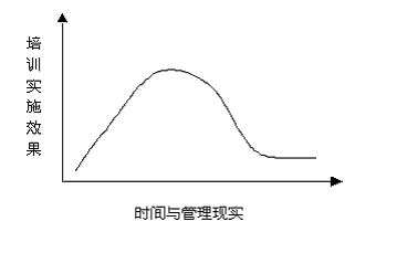 從圖一我們得知,在培訓實施認識之初,企業(yè)對于培訓需求的同化程度越高,培訓實施效果就會越好,反之若是我們的同化層面只停留在實施層面,得不到管理層、戰(zhàn)略層的同化支持自然培訓效果不能長久,只能達到一個短時間的定向認識,隨著時間與現(xiàn)實的變化,培訓效果則會一蹶不振。(見圖二)