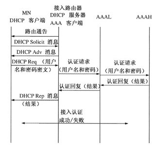 結果證明,完成接入認證過程僅需要2s左右,這是完成DHCPv6協(xié)議重復地址檢測過程和AAA協(xié)議信息交互所需的時間,沒有增加附加的延時,并且在認證成功的同時給MN分配了一個合法的IP地址作為在線轉交地址。