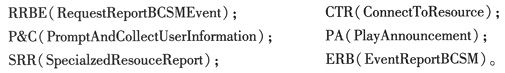 從分布功能平面觀察,每個(gè)業(yè)務(wù)分支對(duì)應(yīng)了一段CAP消息流。預(yù)付費(fèi)用戶查詢業(yè)務(wù)流程是移動(dòng)智能網(wǎng)中比較典型的一個(gè)業(yè)務(wù),300業(yè)務(wù)的主要流程是:用戶撥接入碼,撥語(yǔ)言位,選擇流程,報(bào)余額,通話結(jié)束掛機(jī)等。CAP的消息流引起自動(dòng)機(jī)的狀態(tài)轉(zhuǎn)移從而觸發(fā)下列消息事件,為簡(jiǎn)單起見(jiàn),我們?cè)趫D例中使用消息的縮寫(xiě),具體消息縮寫(xiě)如下: