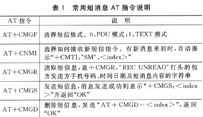 常用短消息相關(guān)AT指令及說(shuō)明如表1所列。