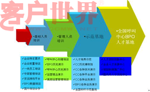 自然,首先得有人才的生產(chǎn)活著吸引能力,也就是意味著產(chǎn)業(yè)園區(qū)周邊有大量的相關(guān)院校,或者產(chǎn)業(yè)園區(qū)具有非常強(qiáng)的吸引外地人才的能力(例如北京),然后才談到人才的培養(yǎng),揚(yáng)州技師學(xué)院首設(shè)“呼叫專(zhuān)業(yè)”成為行業(yè)內(nèi)一個(gè)亮點(diǎn),事實(shí)上,北京早在2年前已經(jīng)在開(kāi)展試點(diǎn)的工作了。關(guān)于人才解決方案以及人員的培訓(xùn),下面的這張圖表述更加淋漓盡致: