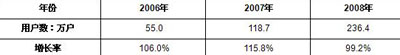 2009年3月5日,中國(guó)權(quán)威ICT研究與管理咨詢機(jī)構(gòu)賽迪顧問(wèn)股份有限公司(股票代碼:HK8235)在“2009中國(guó)消費(fèi)電子市場(chǎng)年會(huì)”上發(fā)布《2008-2009年中國(guó)IPTV產(chǎn)業(yè)發(fā)展研究年度報(bào)告》顯示:2008年,IPTV產(chǎn)業(yè)在政策的推動(dòng)下,呈現(xiàn)持續(xù)發(fā)展,用戶數(shù)達(dá)236.4萬(wàn)戶。IPTV的運(yùn)營(yíng)實(shí)現(xiàn)了由粗放到精細(xì)的轉(zhuǎn)變,運(yùn)營(yíng)商一方面關(guān)注新用戶的拓展,各類免費(fèi)促銷、捆綁促銷帶動(dòng)了用戶數(shù)的增長(zhǎng);另一方面,關(guān)注對(duì)已有用戶使用感受的改進(jìn)。內(nèi)容點(diǎn)播與視頻時(shí)移正逐步成為用戶核心訴求。央視國(guó)際、南方傳媒、國(guó)際廣播電臺(tái)也紛紛與國(guó)內(nèi)各地方電信協(xié)商合作。但相對(duì)于高額的IPTV設(shè)備費(fèi)用,IPTV業(yè)務(wù)的收入十分有限。有效地商業(yè)模式尚未形成。2008年,IPTV仍依靠低價(jià)促銷拓展市場(chǎng)。