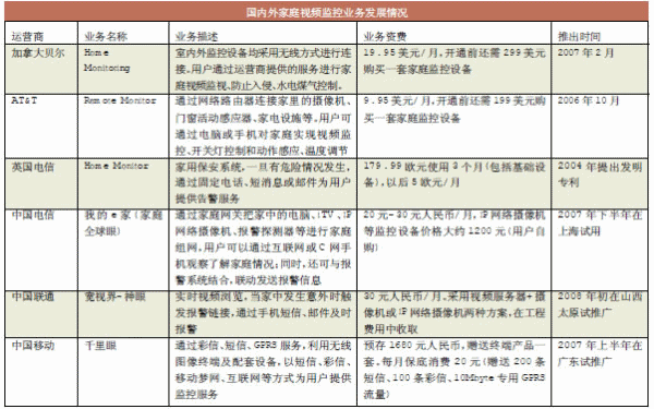 例如,在中國臺灣地區(qū),移動運(yùn)營商已經(jīng)推出了基于3G移動網(wǎng)絡(luò)的無線視頻監(jiān)控業(yè)務(wù),用戶可通過3G手機(jī)對家庭情況進(jìn)行監(jiān)控。同時,3G家庭終端(前端監(jiān)控設(shè)備)具備專業(yè)的無線遠(yuǎn)程監(jiān)控功能,當(dāng)出現(xiàn)盜賊入侵、意外失火或是煤氣泄漏等狀況,它會把報警信息發(fā)送到主人手機(jī)上,讓主人及時獲悉并做出處理。3G家庭終端還可以根據(jù)指令拍攝下家中的實(shí)時視頻畫面,并發(fā)到主人手機(jī)中供以后取證,這對于中高端家庭來說,具有相當(dāng)?shù)恼T惑力。