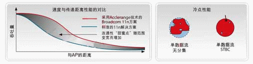 為了向聯(lián)網(wǎng)家庭提供強大的無線骨干網(wǎng),Broadcom利用Acclerange技術(shù)對其新的802.11n路由器平臺作了全面優(yōu)化,其軟硬件增強性能確保了家庭中任一角落的更健壯的無線覆蓋。Accelerange軟件架構(gòu)還支持時空分組編碼(STBC)技術(shù),采用了獨特的2×2天線結(jié)構(gòu),從而能以盡可能低的成本提供更好的性能。它的非線性均衡器只需要兩個,而65nm工藝的集成更是有助于進一步降低成本。另外,基于Accelerange的解決方案針對視頻分發(fā)和其他多媒體應(yīng)用作了優(yōu)化,其內(nèi)置算法可以檢測多媒體數(shù)據(jù)流,并通過動態(tài)調(diào)整來實現(xiàn)最優(yōu)性能。經(jīng)認證的動態(tài)頻率選擇(DFS)技術(shù)還可以在5GHz頻段內(nèi)增加15個信道。