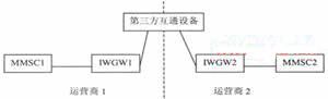 為實(shí)現(xiàn)不同運(yùn)營(yíng)商的用戶之間相互發(fā)送和接收多媒體消息,需要在不同運(yùn)營(yíng)商的多媒體消息中心之間實(shí)現(xiàn)互通。該互通需要多媒體消息中心(MMSC)與互通設(shè)備(IWGW)的連接、IWGW之間的連接實(shí)現(xiàn)。當(dāng)一個(gè)運(yùn)營(yíng)商的網(wǎng)絡(luò)用戶向另一個(gè)運(yùn)營(yíng)商的網(wǎng)絡(luò)用戶發(fā)送多媒體消息時(shí),該多媒體消息經(jīng)發(fā)送方用戶歸屬的MMSC通過(guò)IWGW提交給接收方用戶歸屬的多媒體消息中心,由接收方用戶歸屬的MMSC向其網(wǎng)內(nèi)用戶發(fā)送。網(wǎng)間多媒體消息業(yè)務(wù)互通網(wǎng)絡(luò)結(jié)構(gòu)中主要包括多媒體消息中心(MMSC),互通設(shè)備(IWGW)以及相關(guān)的輔助設(shè)備等。IWGW是指不同運(yùn)營(yíng)商網(wǎng)絡(luò)之間的多媒體消息互通設(shè)備。網(wǎng)間多媒體消息互通設(shè)備間的互聯(lián)可以由兩個(gè)運(yùn)營(yíng)商的IWGW直接連接,也可以經(jīng)過(guò)第三方互通設(shè)備轉(zhuǎn)接(見圖1、圖2)。