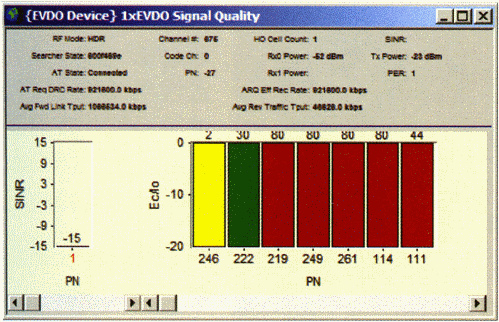 測試中,不僅可以得到各導頻級的信息、SINR、反向鏈路性能、功率控制、信令消息及RLP層吞吐量信息,還可以通過安捷倫接收機進行獨立的射頻環(huán)境測試,如導頻掃描、頻譜測試和連續(xù)波測試,通過接收機的這些測試數(shù)據(jù),查找網(wǎng)絡中存在的導頻污染、鄰區(qū)丟失、基站始終、孤島效應、外部干擾等問題,從多方面對出現(xiàn)的問題進行定位分析,極大的提高了測試的效率。