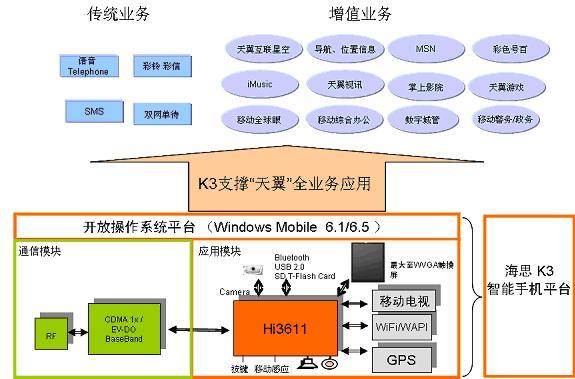 K3方案中集成了GPS、WAPI/WiFi、CMMB(帶CA)的等各種主流應(yīng)用,手機廠商在選擇時可以快速的剪裁、組合,形成不同配置的天翼手機系列,來滿足不同消費群體的需求。
