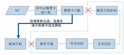 以圖4智能網(wǎng)充值開機(jī)流程為例,其經(jīng)歷的步驟繁多,特別是其中信控判斷邏輯復(fù)雜,程序處理耗時多,是引起月結(jié)用戶充值到賬但無法及時開機(jī)的關(guān)鍵環(huán)節(jié)。站在服務(wù)用戶的角度,最直接的應(yīng)急方式便是提取已繳費入賬的號碼直接送HLR施工開機(jī),對于存在欠費可能的用戶,其開機(jī)狀態(tài)在正常流程進(jìn)行修復(fù),但對于充值后仍欠費的用戶,其開機(jī)狀態(tài)將在經(jīng)歷過信控后自動被修改為停機(jī)。