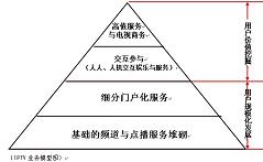 擁有4億多注冊(cè)用戶的騰訊,占有中國(guó)即時(shí)通信80%的市場(chǎng)份額,互聯(lián)網(wǎng)行業(yè)贏家通吃的定律顯露無(wú)疑,騰訊在海量用戶群基礎(chǔ)上開(kāi)發(fā)的各種業(yè)務(wù)都在行業(yè)排名前列。當(dāng)電視服務(wù)的規(guī)模用戶群得以穩(wěn)固,基于用戶規(guī)模之上的多元化服務(wù)集成成為可能,對(duì)電視服務(wù)形成高度依賴的用戶群具備了價(jià)值挖掘的條件。人人交互、人機(jī)交互依托基礎(chǔ)的電視分眾門(mén)戶化應(yīng)用,形成了最初的用戶使用習(xí)慣;依托電視分眾門(mén)戶化集成的積累,建立用戶識(shí)別、用戶分析、收視分析、用戶數(shù)據(jù)交換的技術(shù)體系,用以支撐未來(lái)多元化娛樂(lè)與服務(wù)的開(kāi)發(fā);贗PTV的交互能力,依托電視終端的易用性與舒適性,用戶價(jià)值、終端價(jià)值被充分挖掘,電視服務(wù)開(kāi)始對(duì)其他媒介形式(含互聯(lián)網(wǎng))的用戶形成吸納。圍繞交互、商務(wù)需求的電子貨幣體系逐漸完善,電視進(jìn)入可有效運(yùn)營(yíng)、可便捷支付的良性的產(chǎn)業(yè)循環(huán),IPTV多元化業(yè)務(wù)之門(mén)打開(kāi)。