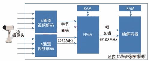圖2:帶幀交錯(cuò)輸出的基于 8 通道視頻解碼器的子系統(tǒng)