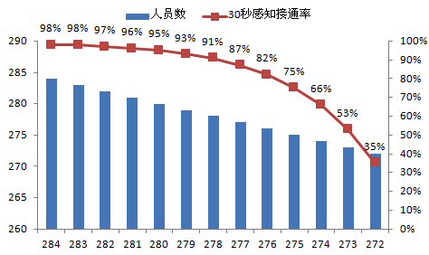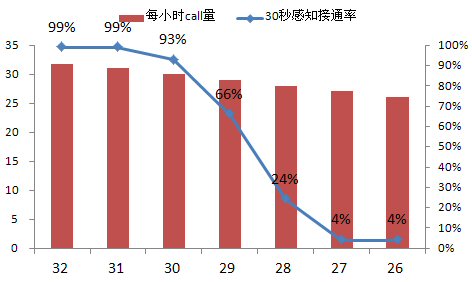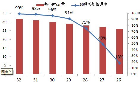 呼叫中心指標體系中最為基礎最為關鍵的就是接通率指標了,下面,本文重點將呼叫中心部分與接通率相關的運營數(shù)據(jù)轉化成圖表,用erlang-C(國際標準的呼叫中心管理軟件)的計算數(shù)據(jù)表示管理和資源投入對于呼叫中心生產(chǎn)的巨大影響。