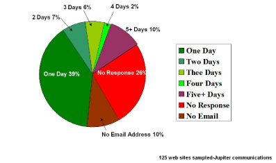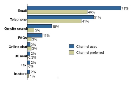 該報(bào)告進(jìn)一步總結(jié)到,60%的網(wǎng)站客戶(hù)希望更多互動(dòng)但許多電子商務(wù)企業(yè)無(wú)法回應(yīng)電子郵件且不能提供足夠的電話(huà)支持。也有很多電子商務(wù)企業(yè)提供電子郵件支持,比如說(shuō)etoys,但對(duì)于如潮水般洶涌而來(lái)的電子郵件聯(lián)絡(luò)他們顯然沒(méi)有什么準(zhǔn)備以至于處理結(jié)果符合客戶(hù)預(yù)期的郵件少之又少。如果處理的好
