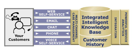 Technologies”是一家非常著名的多接觸點(diǎn)呼叫中心供應(yīng)商,這家公司建議采用“通用事故”追蹤機(jī)制,它強(qiáng)調(diào)報(bào)表和歷史紀(jì)錄必須作為任何一個(gè)多接觸點(diǎn)聯(lián)絡(luò)中心不可或缺的組成部分。“Rightnow”提供的以下插圖很清楚地向我們展示了多渠道知識(shí)庫(kù)集成是如何被強(qiáng)制執(zhí)行的。
