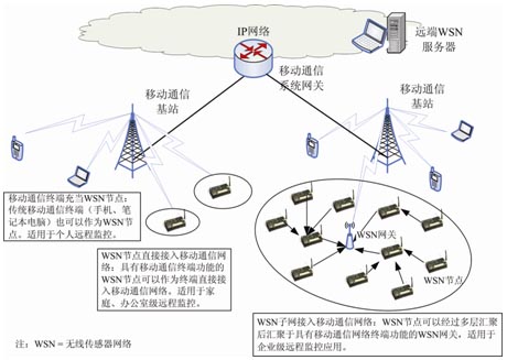 圖:無線傳感器網(wǎng)絡(luò)和移動(dòng)通信的結(jié)合