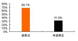 調(diào)查數(shù)據(jù)顯示,在所訪問(wèn)6個(gè)城市的手機(jī)用戶(hù)中,已使用過(guò)數(shù)據(jù)增值業(yè)務(wù)(包括已使用過(guò)短信業(yè)務(wù)或已使用過(guò)其它業(yè)務(wù)的)的用戶(hù)占總體的68.1%,而還未使用過(guò)數(shù)據(jù)增值業(yè)務(wù)的占總體的31.9%。如下圖所示: