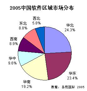 2005中國軟件區(qū)域市場(chǎng)分布圖