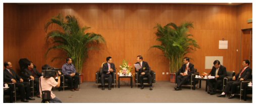 戴相龍代表市委、市政府對大家對有關方面成功簽約表示祝賀。在向客人介紹天津社會經濟發(fā)展和濱海新區(qū)的最新情況后,戴相龍指出,濱海新區(qū)將成為繼深圳經濟特區(qū)、上海浦東新區(qū)之后,又一帶動區(qū)域發(fā)展新的經濟增長極。我們要努力把天津濱海新區(qū)建設成為我國北方對外開放的門戶、高水平的現(xiàn)代制造業(yè)和研發(fā)轉化基地、北方國際航運中心和國際物流中心,逐步成為宜居生態(tài)型新城區(qū)。同時,帶動天津市加快建設成為國際港口城市、北方經濟中心和生態(tài)城市。