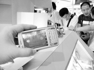 “第一眼感覺如同收音機!痹诟呓粫F(xiàn)場埃立特通信的展臺前,一位拿著該公司生產(chǎn)的電視手機的游客好奇地把玩著這臺拖著收音機式天線的電視手機——已在廣東省局部試點運營的廣電系手機電視。