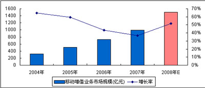 1、2008年中國移動通信增值業(yè)務(wù)市場規(guī)模預(yù)測