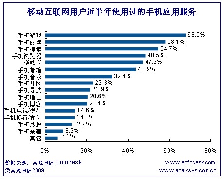 2009年手機(jī)游戲、手機(jī)閱讀成為用戶最受歡迎的手機(jī)應(yīng)用服務(wù)