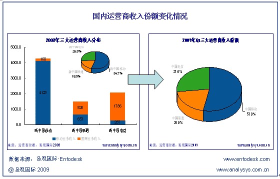 作為2008年度電信業(yè)內(nèi)最大的兩件大事,重組和3G牌照的發(fā)放不僅拉開了全業(yè)務(wù)競(jìng)爭(zhēng)的序幕,而且為國內(nèi)電信市場(chǎng)的競(jìng)爭(zhēng)注入了新的活力,一方面提供了讓電信業(yè)競(jìng)爭(zhēng)逐漸趨于平衡的發(fā)展契機(jī),從另一方面也同時(shí)帶來了大量的消費(fèi)需求。