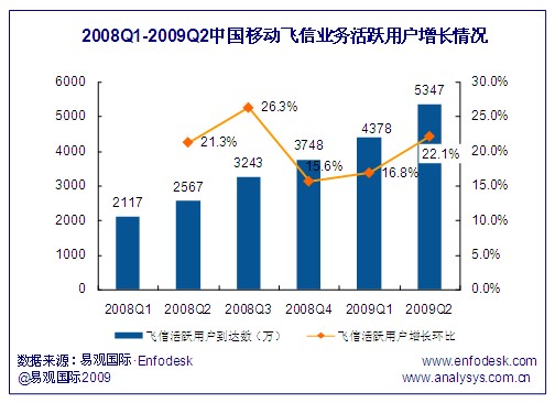中移動飛信業(yè)務(wù)用戶規(guī)模穩(wěn)步增長