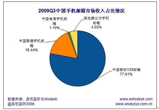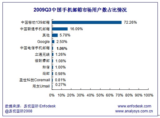 易觀:中移動139郵箱領(lǐng)跑2009Q3手機(jī)郵箱市場
